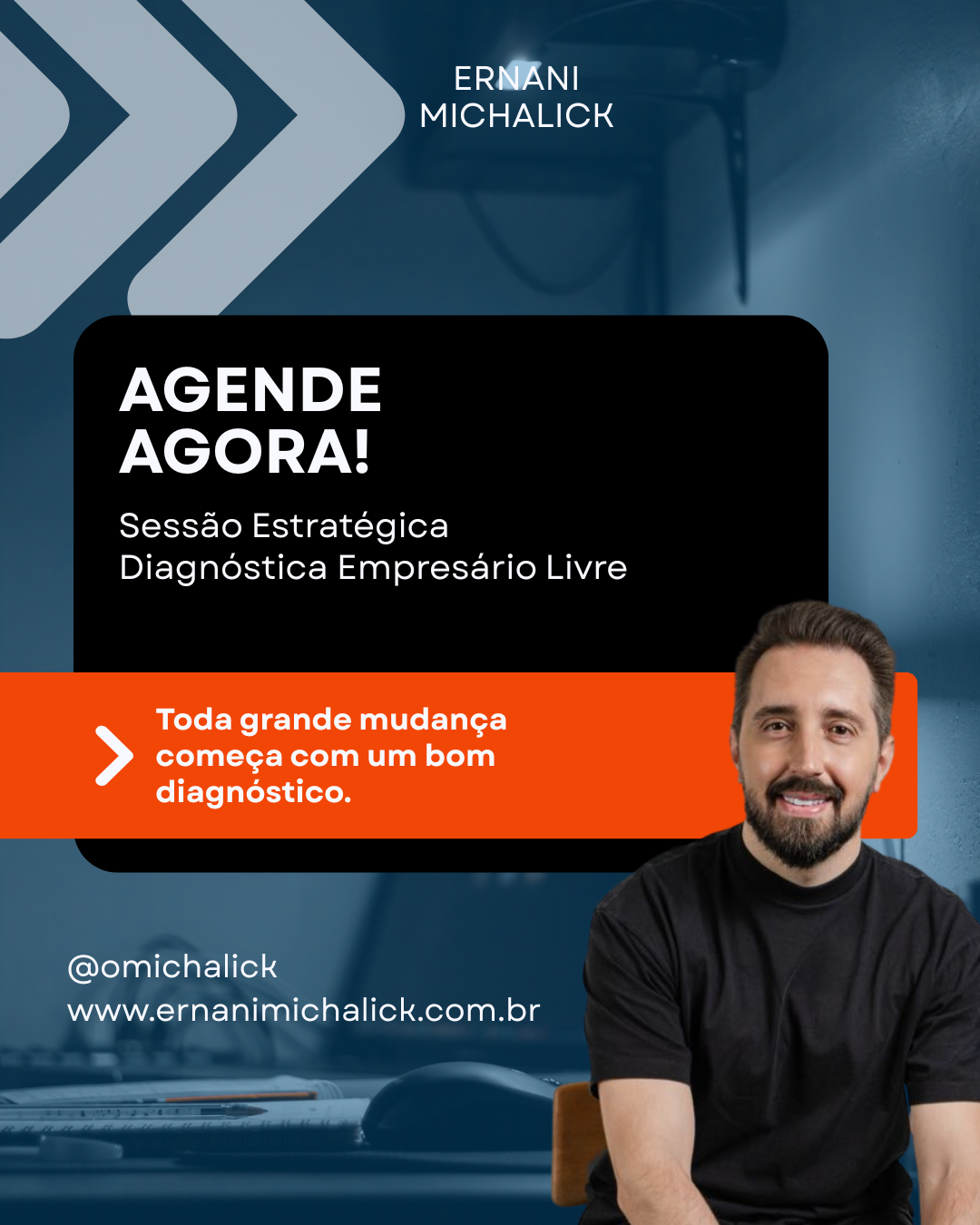Com a Sessão Diagnóstica Estratégica - Empresário Livre, identifique os gargalos que travam o seu crescimento e saia com um Plano de Ação prático em uma sessão estratégica de 45 minutos. Pare de trocar tempo por dinheiro e alcance a verdadeira liberdade no seu negócio.